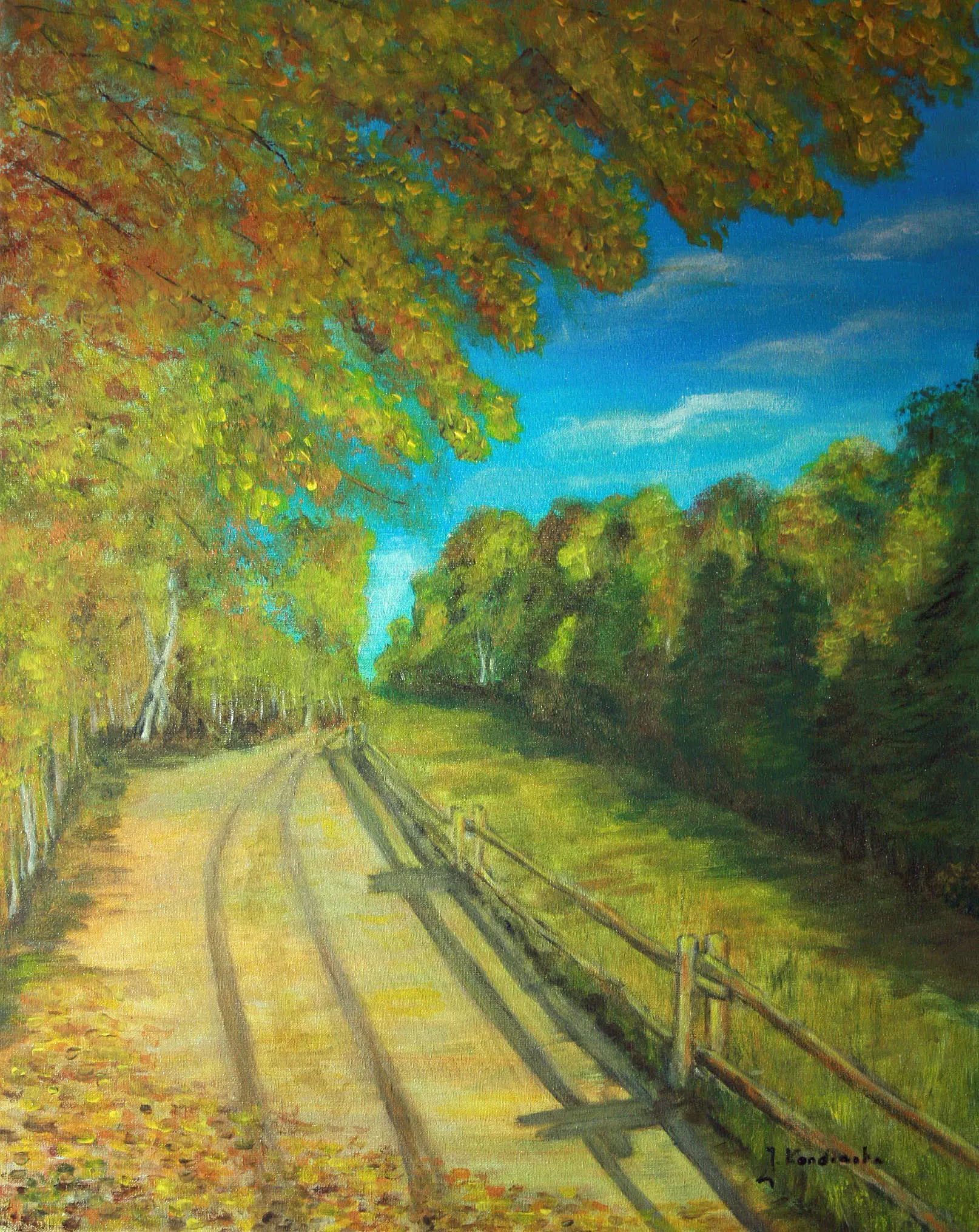 Pejzaż leśny utrzymany w naturalnej, stonowanej kolorystyce. Obraz oddaje atmosferę ciszy i bliskości natury – miękkie przejścia barw i spokojna kompozycja budują wrażenie harmonii oraz głębi. To praca, która dobrze „oddycha” na ścianie i nie dominuje wnętrza, a jednocześnie wprowadza do niego spokój i równowagę.